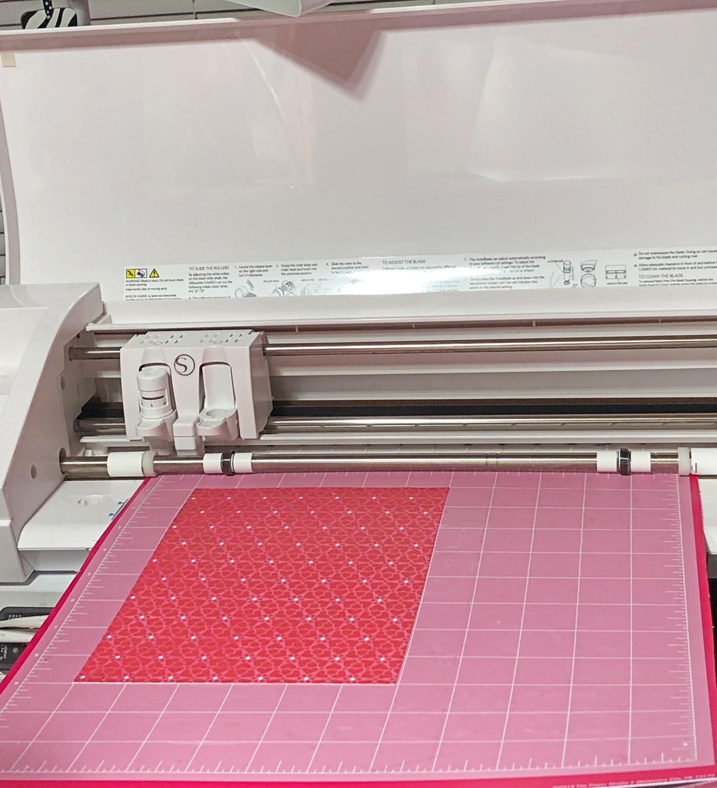 After placing the glitter cardstock onto the mat, cut the pieces in your electric cutting machine.