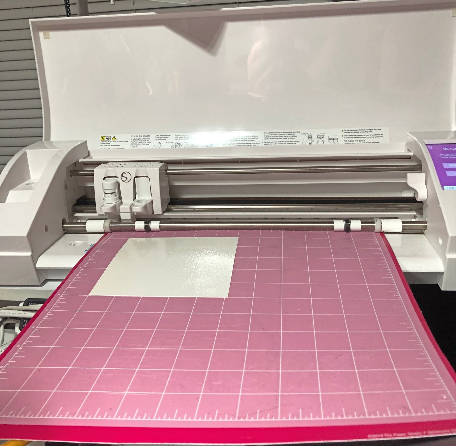 white glitter cardstock on a cricut machine mat
