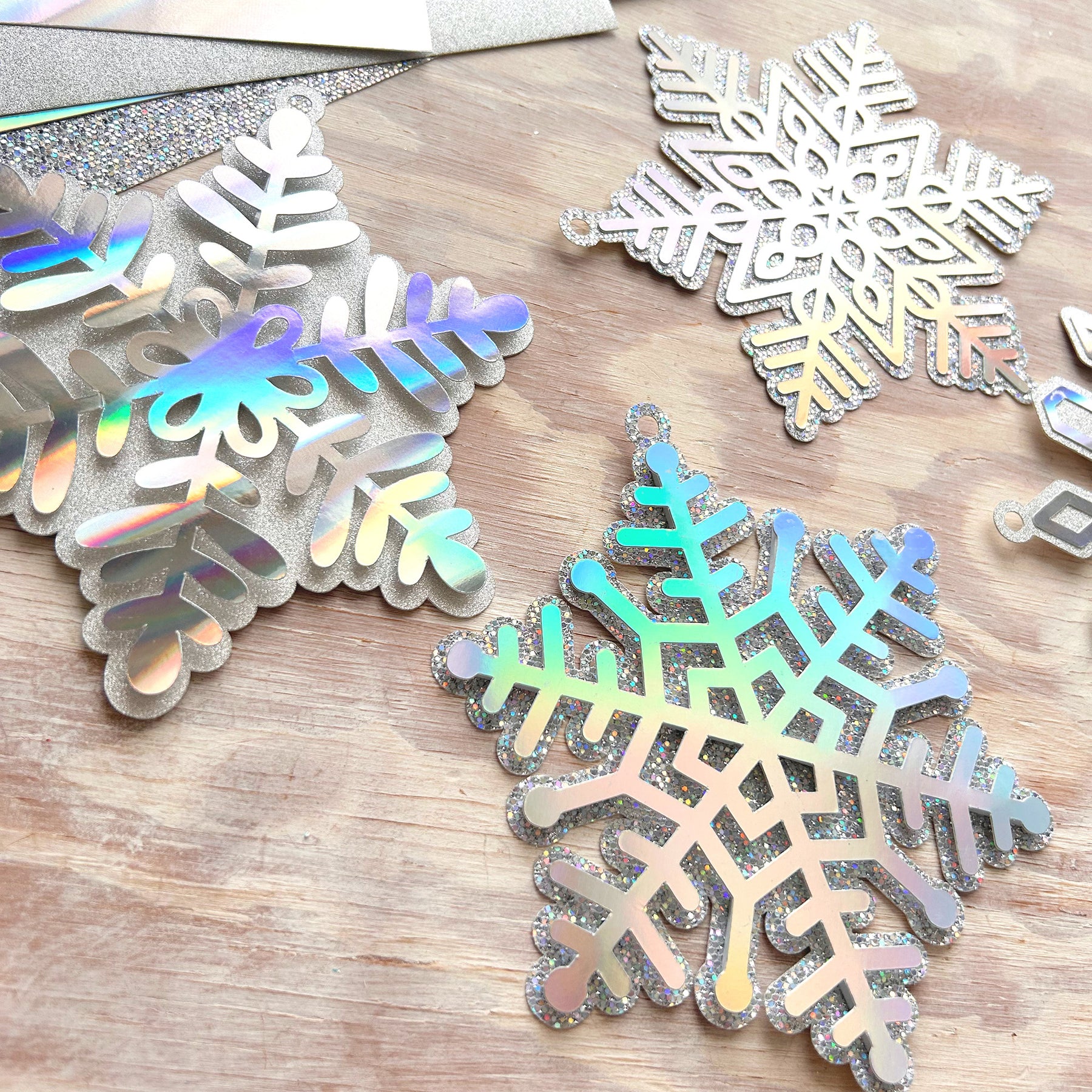 A variety pack with 20 unique holographic cardstock papers. This sampler has one sheet of each of 20 different holographic cardstocks:. Rainbow, Ice Chips, In The Stars, Slanted Light, Party Confetti, Basket Weave, Disco Dot, Confetti Rings, Galaxy, Small Bytes, Mosaic, Blocks, Tiny Hearts, Radio Waves, Snow Flurry, Zentangle, Polka Dots, Fireworks, Tiny Stars, Plaid.