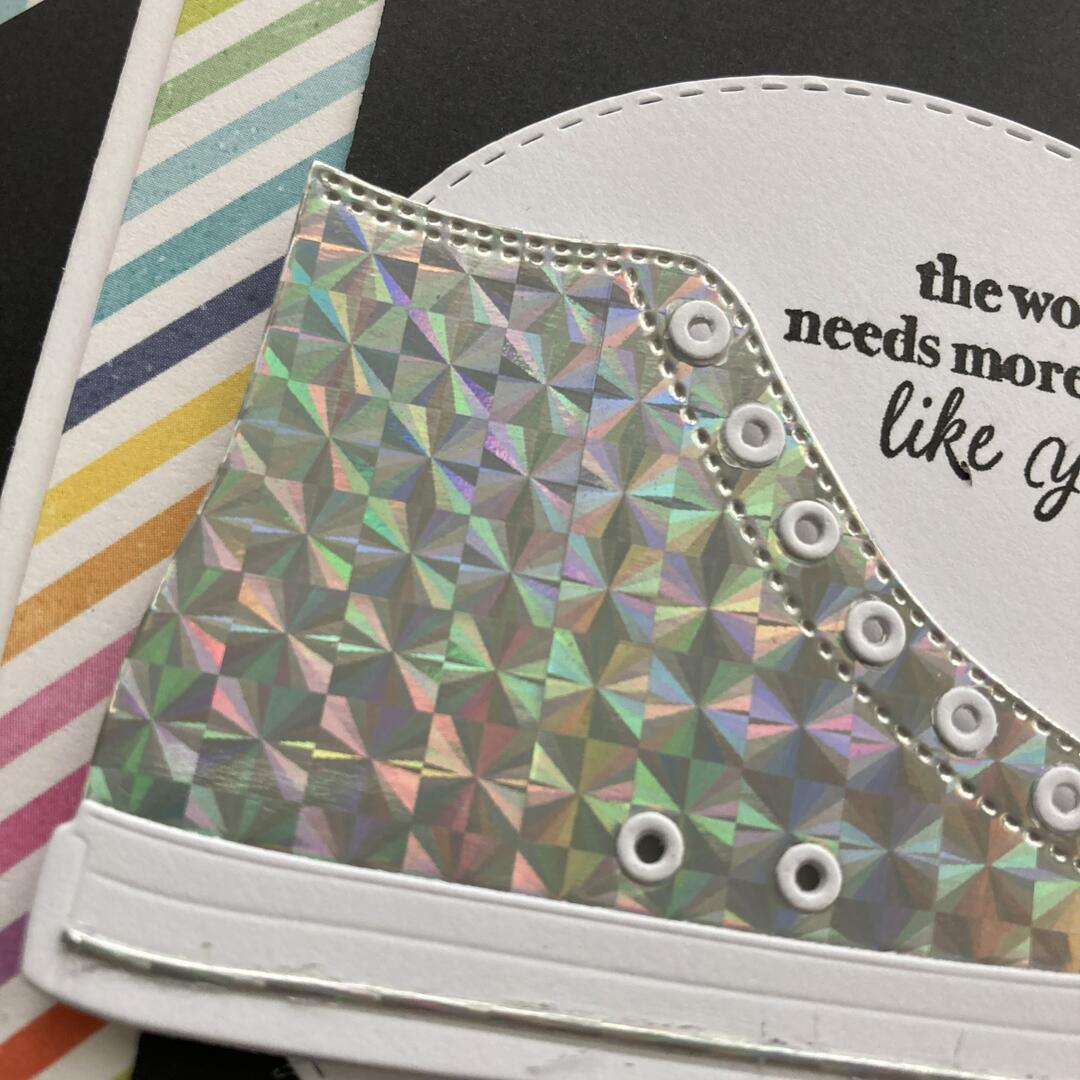 Handmade card using American Crafts holographic traingles cardstock.