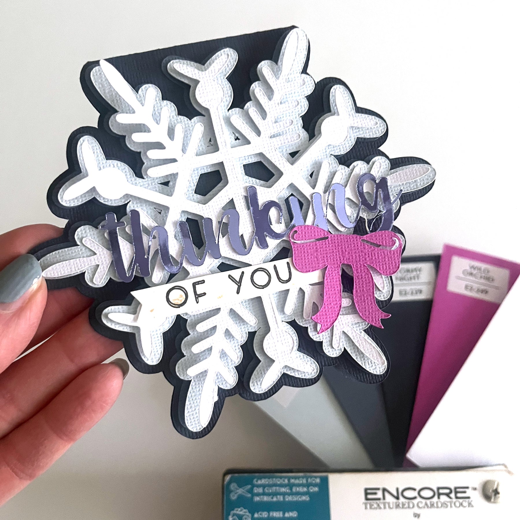 Handmade Snowflake Shaped Card featuring Glitter Luxe Cardstock and Encore Paper