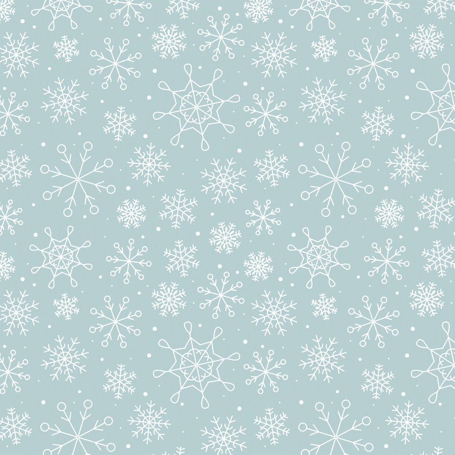 • (Side A - repeating pattern featuring stylized snowflakes of various sizes and designs scattered across a solid, light blue or pale aqua background. The snowflakes are rendered in white outline, creating a clean, wintery motif, and are interspersed with small white dots for added texture, evoking a gentle snowfall. Side B - star-like or stylized snowflake shapes, evenly distributed in a grid across a solid pale pink background)*