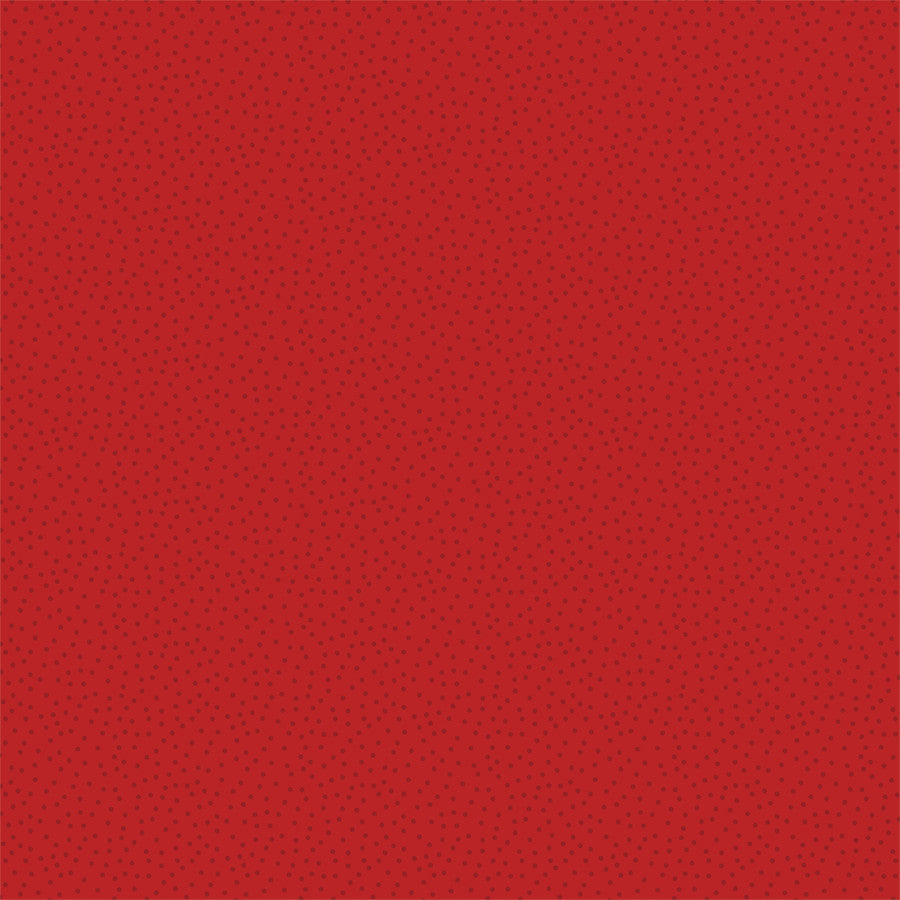 (Side A - a festive, holiday-themed floral pattern set against a clean white background. The design features hand-drawn botanical elements, including vibrant red poinsettias, evergreen pine sprigs, and delicate light-green leaves. Small accents such as tiny red berries, brown pinecones, and black ribbon-like bows are scattered throughout, creating a dense, cheerful "Christmas Farm" aesthetic. Side B- a repeating pattern of small dots forming a stipple effect on a red background.)