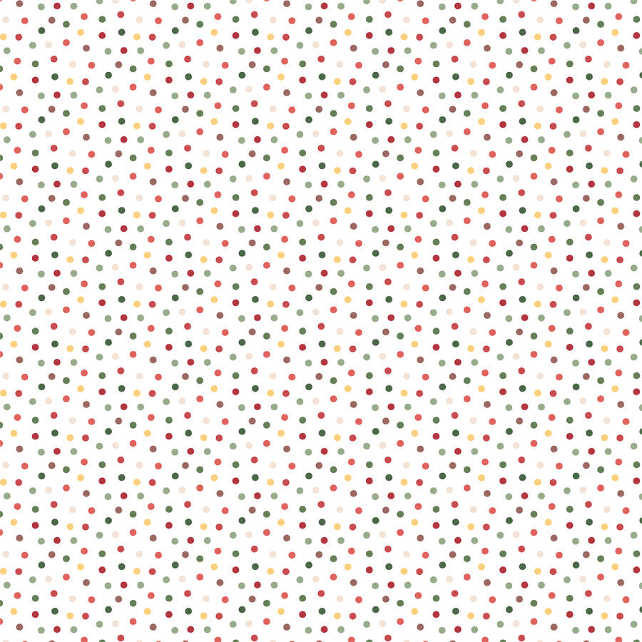 • (Side A - grid of nine Christmas-themed journaling cards, perfect for scrapbooking or holiday crafts. The cards use a traditional color palette of forest green, cherry red, and cream, incorporating classic holiday motifs such as decorated trees, wreaths, poinsettias, and gifts. Each tile showcases different typographic styles—ranging from elegant scripts to bold block lettering—with phrases such as "Joy to the World," "Just Believe," and lyrics from "Up on the Housetop." The overall aesthetic is a charming blend of vintage and modern graphic design, featuring patterns like plaid, polka dots, and wood grain backgrounds, Side B -This image features a playful, multi-colored polka dot pattern in muted shades of red, olive green, mustard yellow, and soft beige set against a clean white background)*