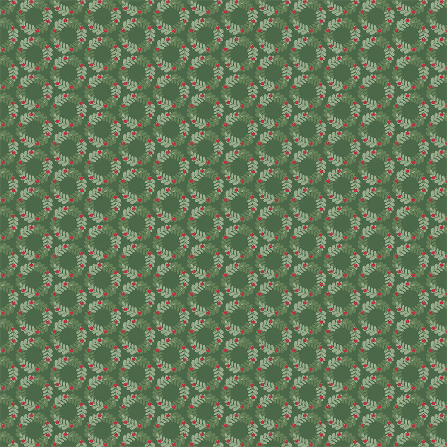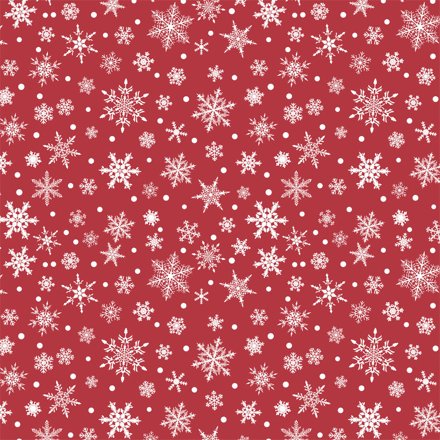 • (Side A - white snowflakes and small dots scattered across a solid, deep red background. The snowflakes vary in size and complexity, ranging from intricate, multi-layered geometric designs to simpler, crystalline star shapes, Side B - a repeating Christmas-themed pattern set against a deep forest green background. The design consists of small, circular holiday wreaths made of pale sage green leaves and accented with tiny red berries)*