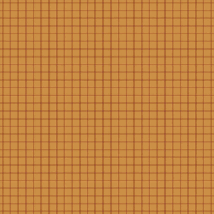 - (Side A - a seamless, repeating damask-style pattern with an ornate, nature-inspired design with vertical columns of stylized foliage, vines, and small flowers, predominantly in a palette of mustard yellow, teal/slate blue, pale pink, and terracotta, set against a dark forest green/almost black background. The overall feel is rich and autumnal. Side B - a grid or plaid design. The background is a solid color, appearing to be a shade of orange or golden brown. Overlaid in the background are thin, intersecting lines that form a consistent grid. The lines are a slightly darker shade of brown or burnt orange than the background)*