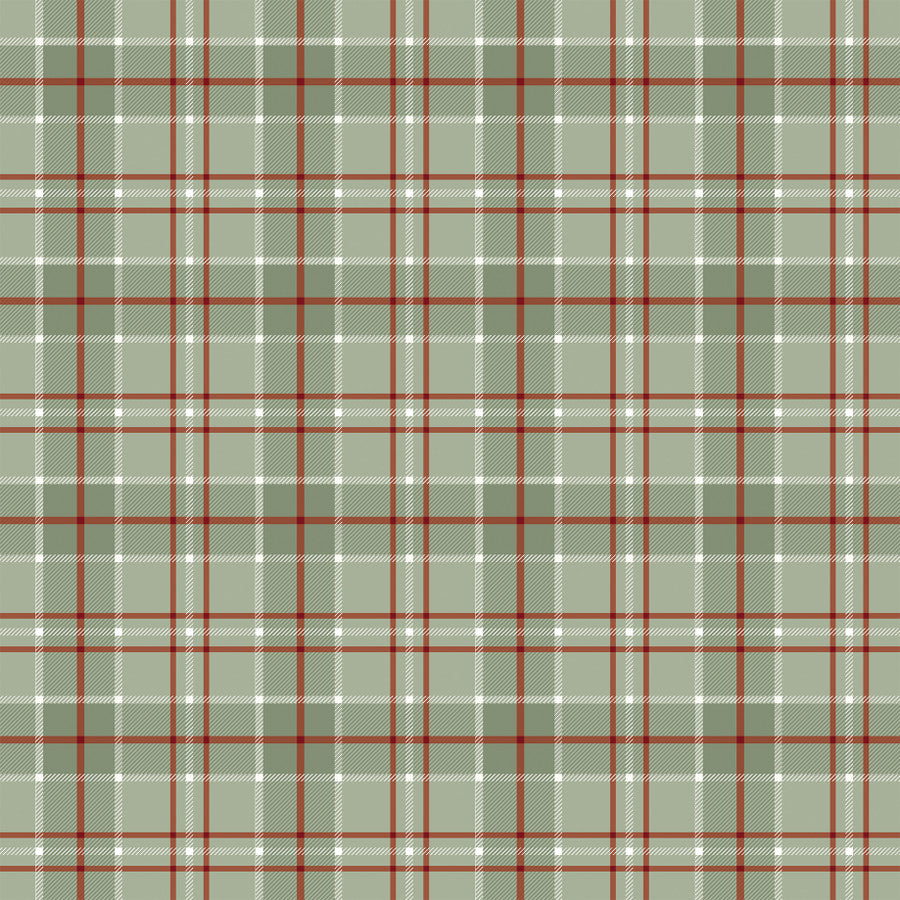 • (Side A - numerous scattered white snowflakes of varying sizes, along with small white dots representing falling snow, all set against a vibrant, solid red background, Side B - plaid or tartan pattern with a dominant pale sage green background)*