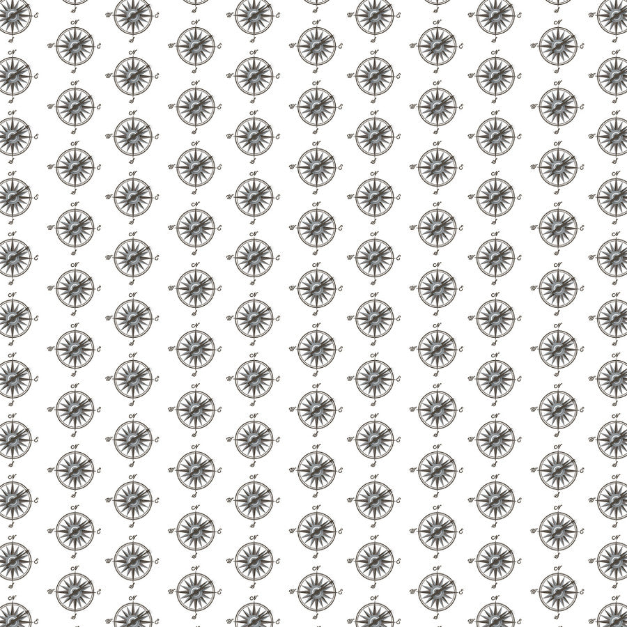- (Side A - grid of 12 vintage-style travel posters. Each poster features a classic, stylized illustration of a travel theme or destination, often including airplanes, ships, or landmarks. The color palette is bright and nostalgic, and the typography is bold and retro. The posters promote various locations and types of travel, such as Jungle Adventures, Global Adventure Tours, and trips to Italy, Europe, and the South Seas. Side B - a repeating pattern featuring a small, stylized compass rose. The compasses are arranged in a grid, creating a seamless background. The design is simple, with the compass showing the cardinal directions (N, E, S, W) and a few intermediate points)*