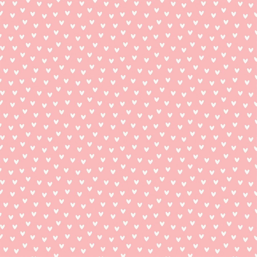 - (Side A - a vintage-style floral pattern set against a clean, off-white background. The design is a repeating arrangement of various botanical elements, including lush red roses, delicate clusters of pink blossoms, and tiny white sprigs with green foliage. Interspersed throughout the floral bouquets are small, black heart motifs that add a romantic, whimsical touch to the composition. Side B -a repeating pattern of small, hand-drawn white hearts set against a solid light pink background. The hearts are arranged in a slightly offset, grid-like fashion, creating a soft and playful texture across the entire surface)*