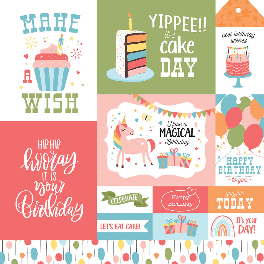 BIRTHDAY GIRL MULTI JOURNALING CARDS - 12x12 Double-Sided Patterned Paper - Echo Park
