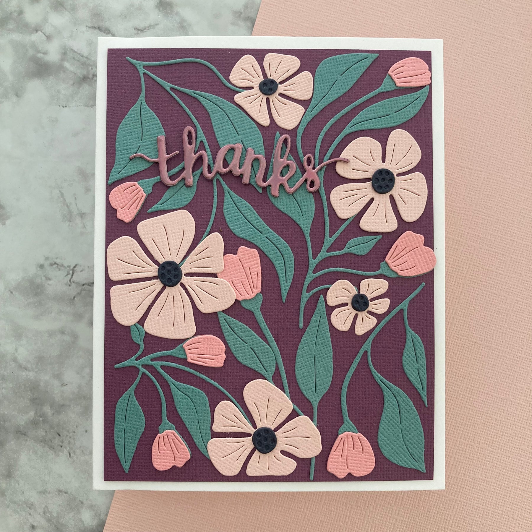 Handmade diecut card featuring Encore Flamingo Textured Cardstock