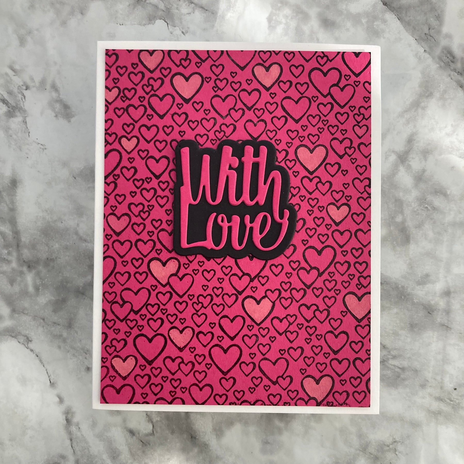 Pink handmade card with bleach stamping
